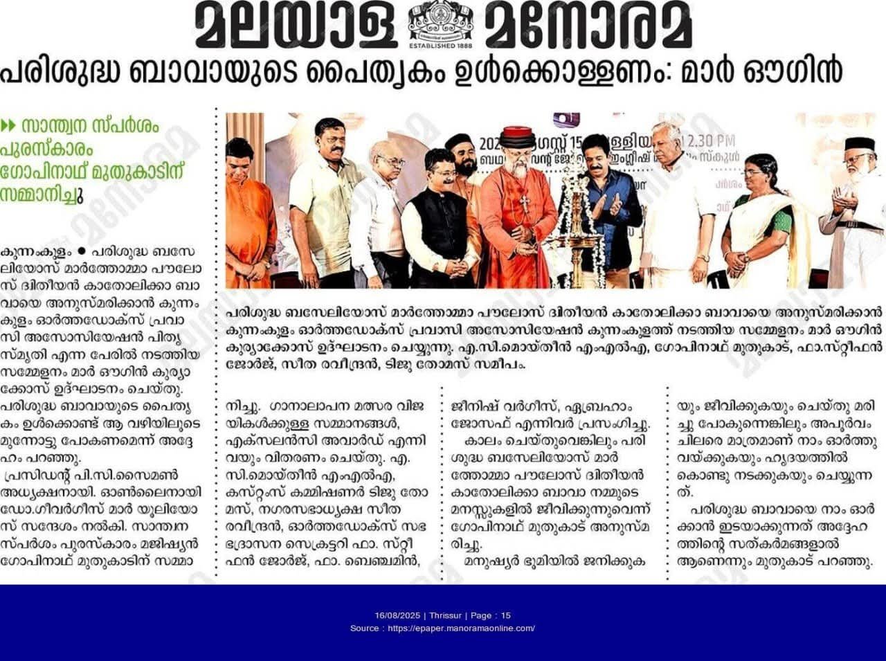 Malankara Orthodox Church Kunnamkulam region decided to stand together in the UAE region.